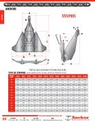 TYPE OF STEVPRIS - MAIN DIMENSIONS IN MM; ANCHOR WEIGHT IN KGS